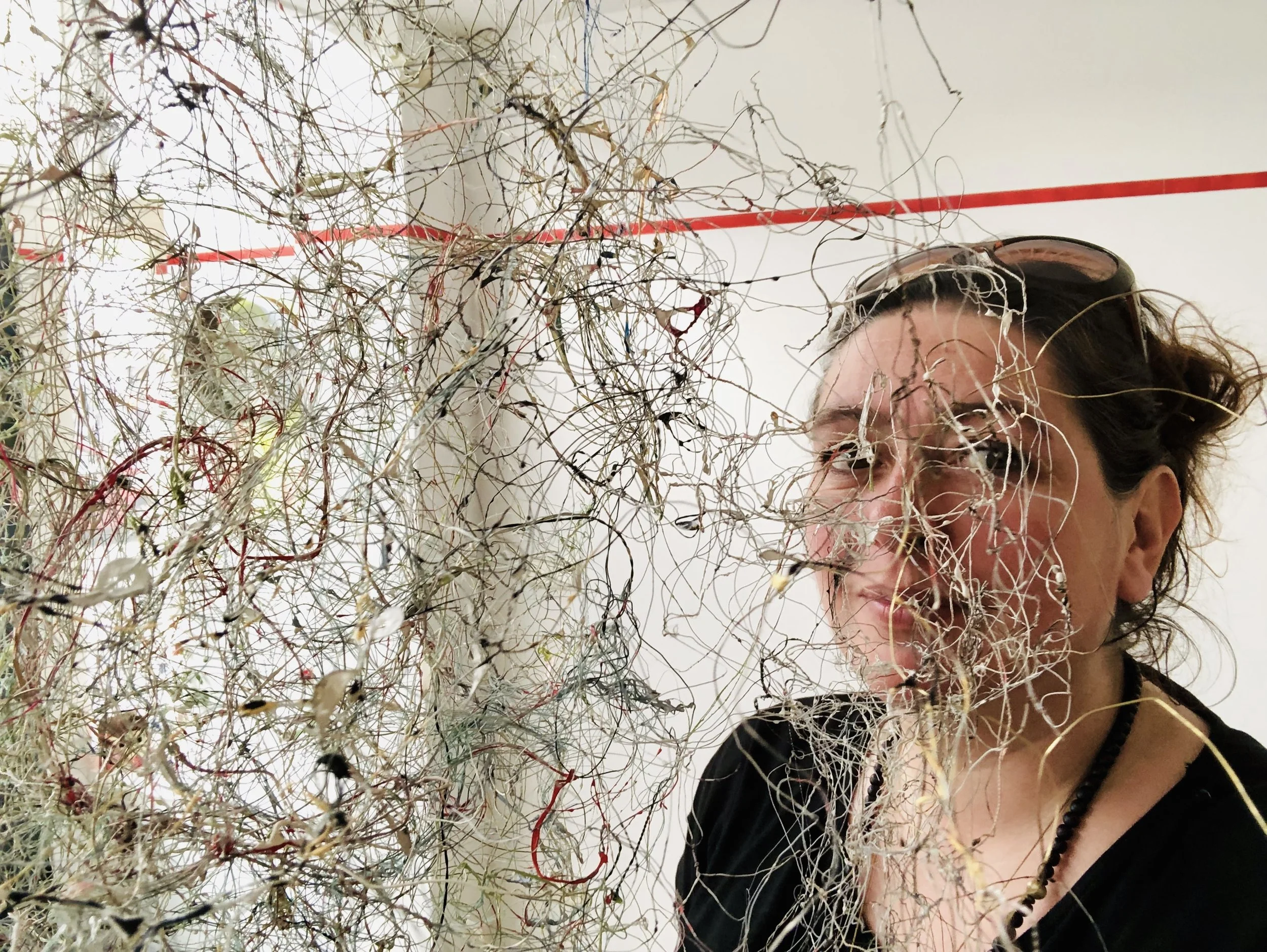 Susanna Brenner is a visual artist working across video, sculpture, installation, and drawing. Since 2020, she has re-established an independent visual art practice after an extensive period working within performance and theatre contexts. Her sculptural works—constructed from metal and textile wire, painted with acrylic—create fragile, tension-filled spatial narratives. Her drawings often accompany or extend these sculptural environments.