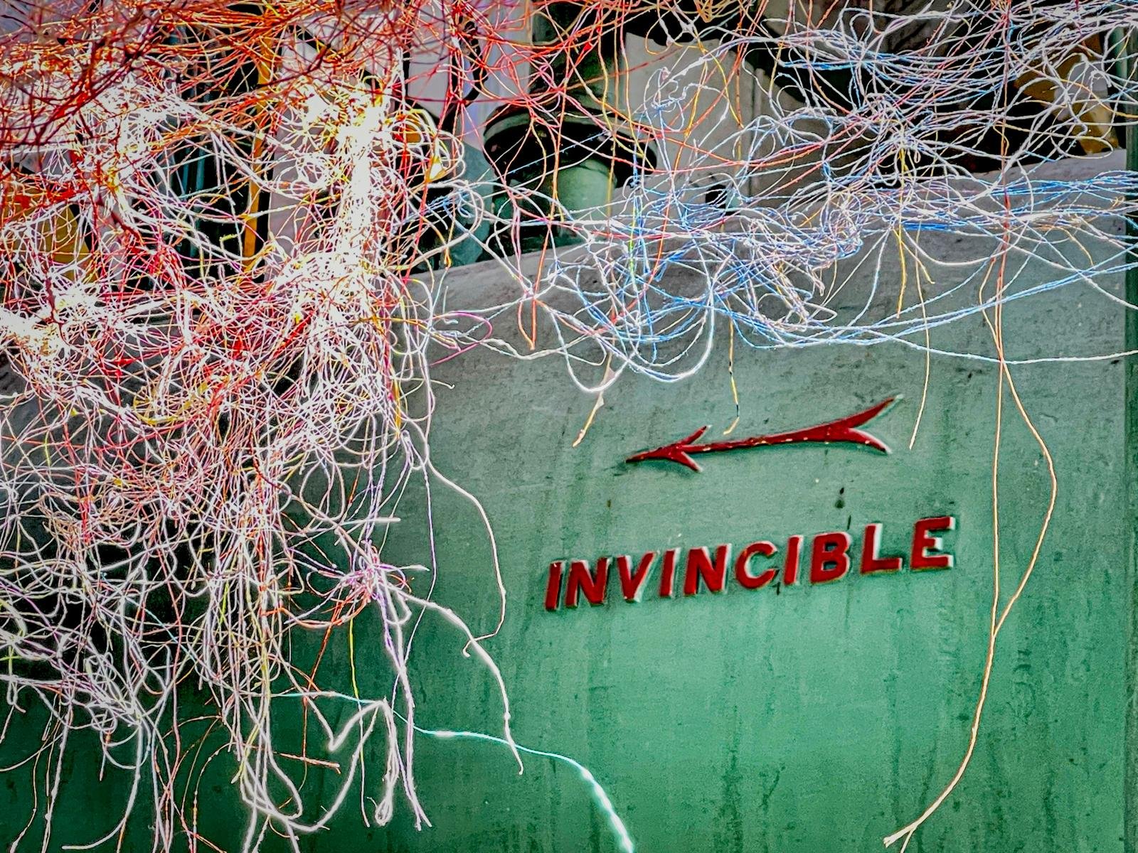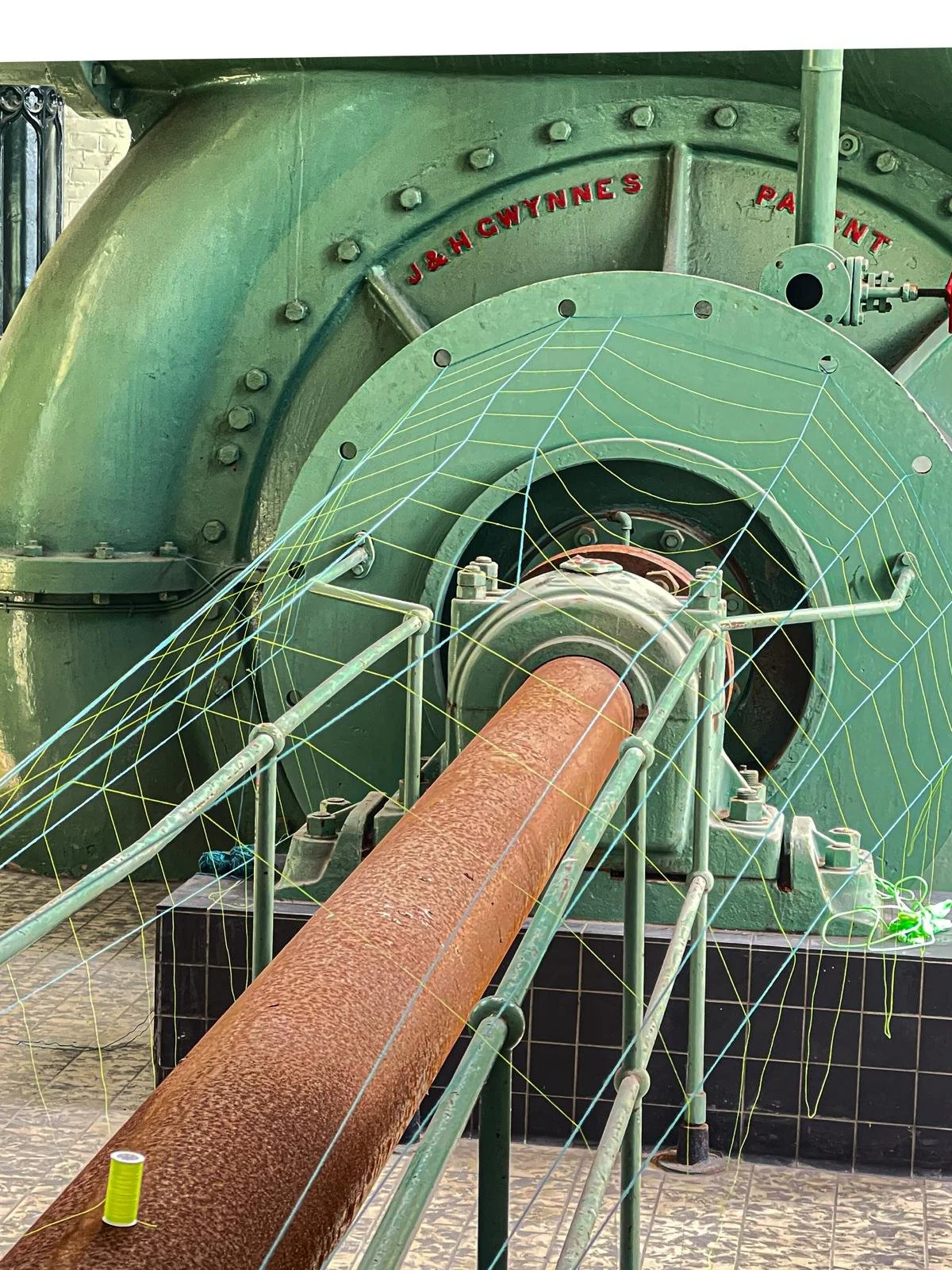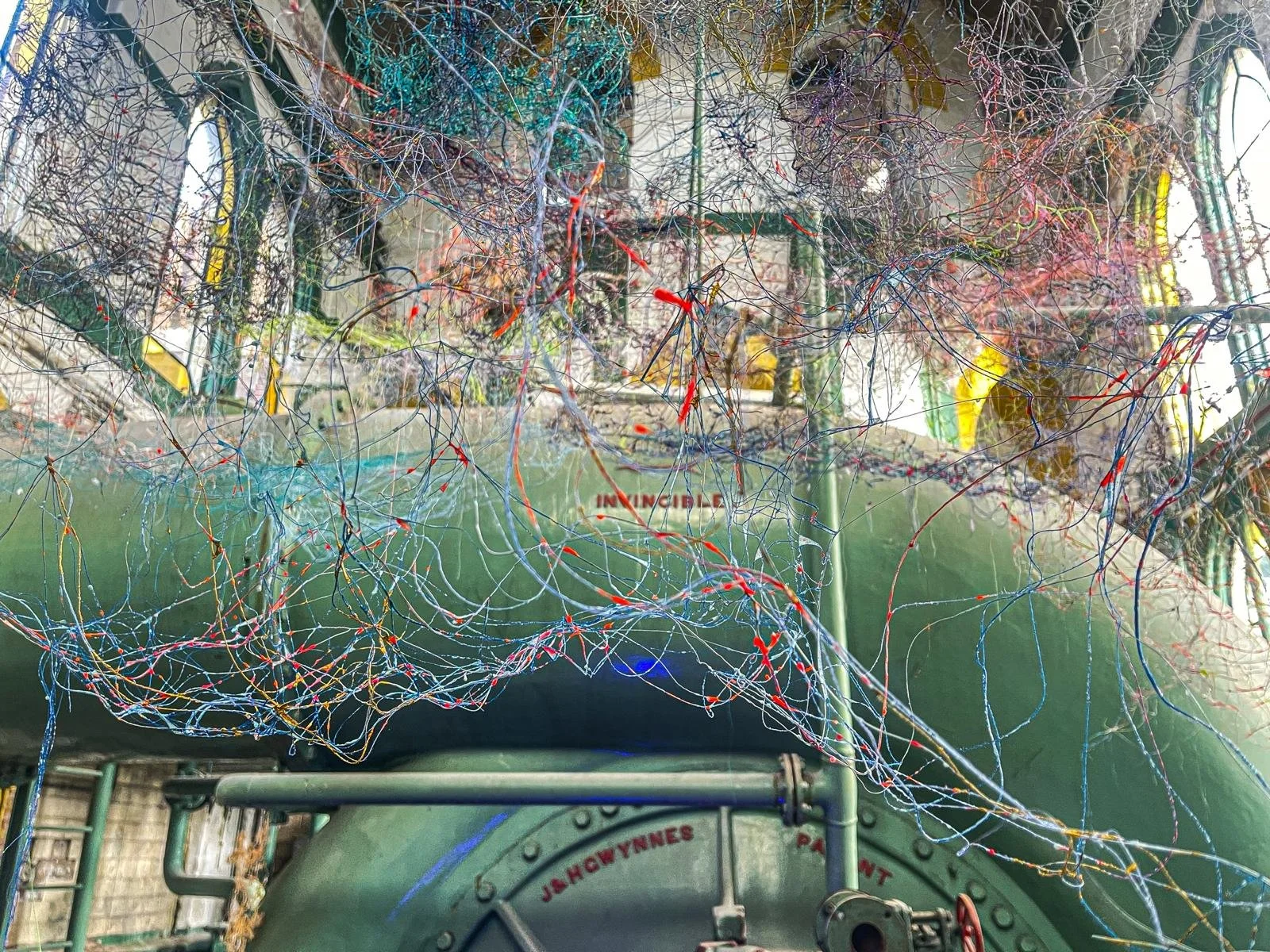 Material: textile / metal wire, acrylic paint, reflective pigment, soundscape,(UV) light