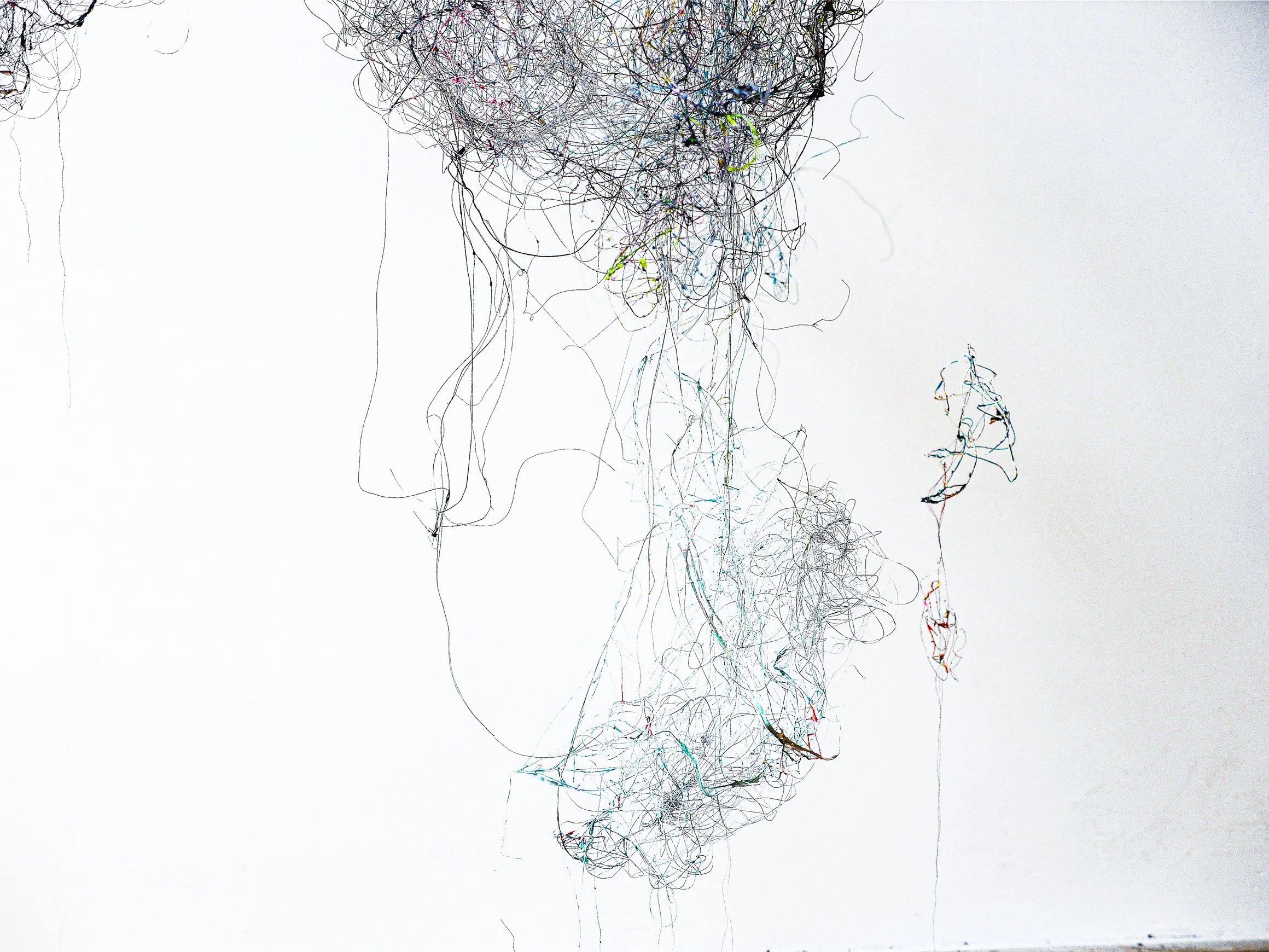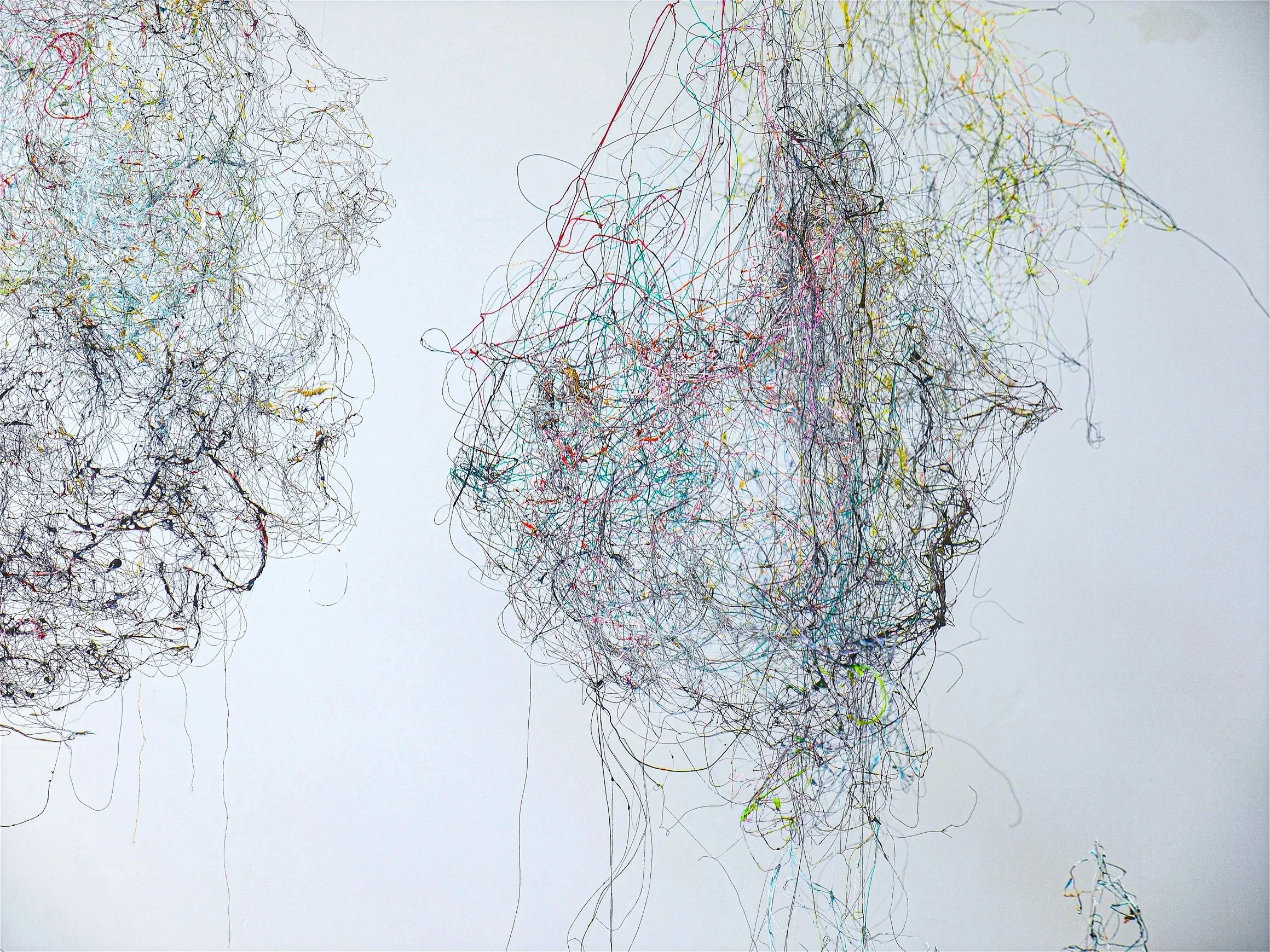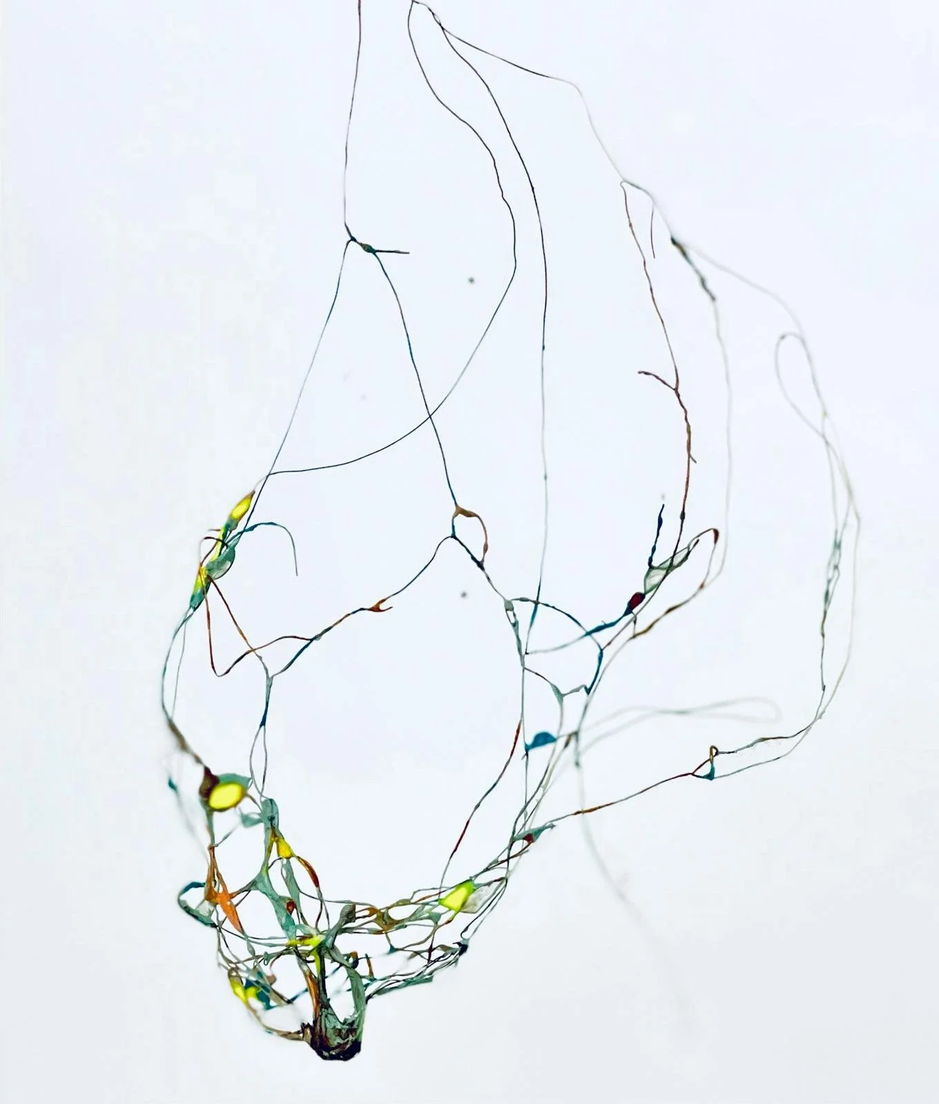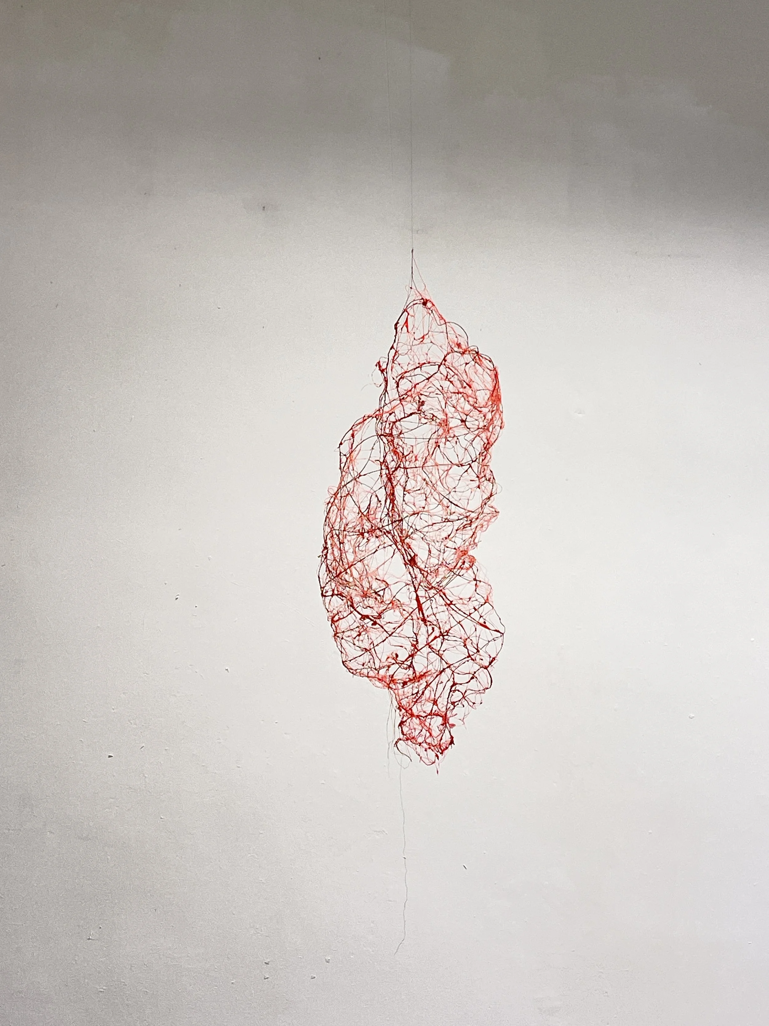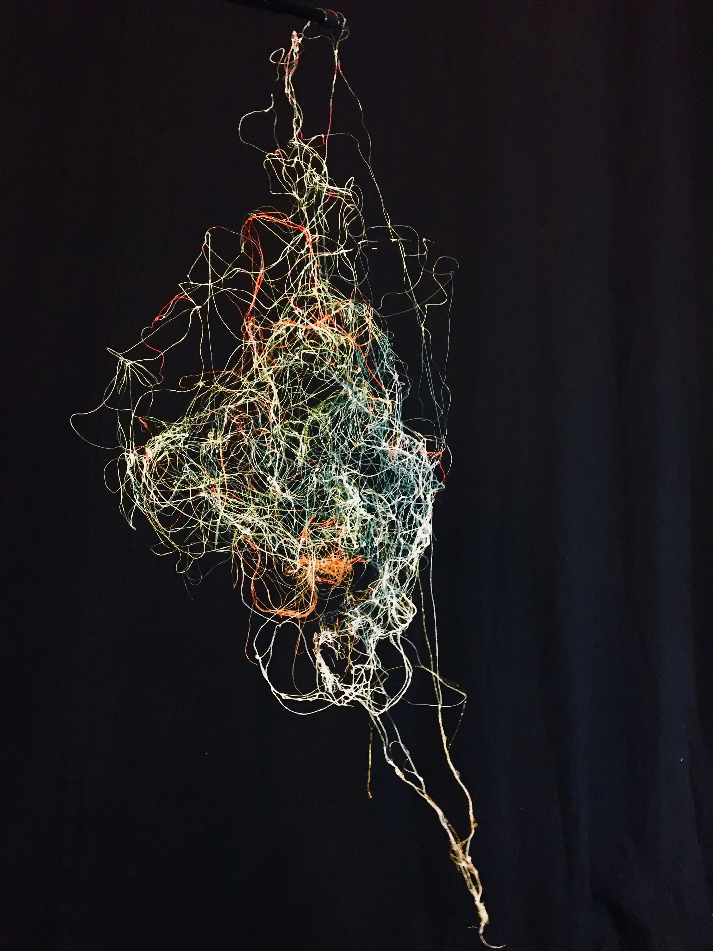Daemon Eatersmetal wire, thread, paint ’One Element’2025 approx. 85cm ø 50cmtextile / metal wire, acrylic paint, reflective pigment, woven and shaped Portable… 2017