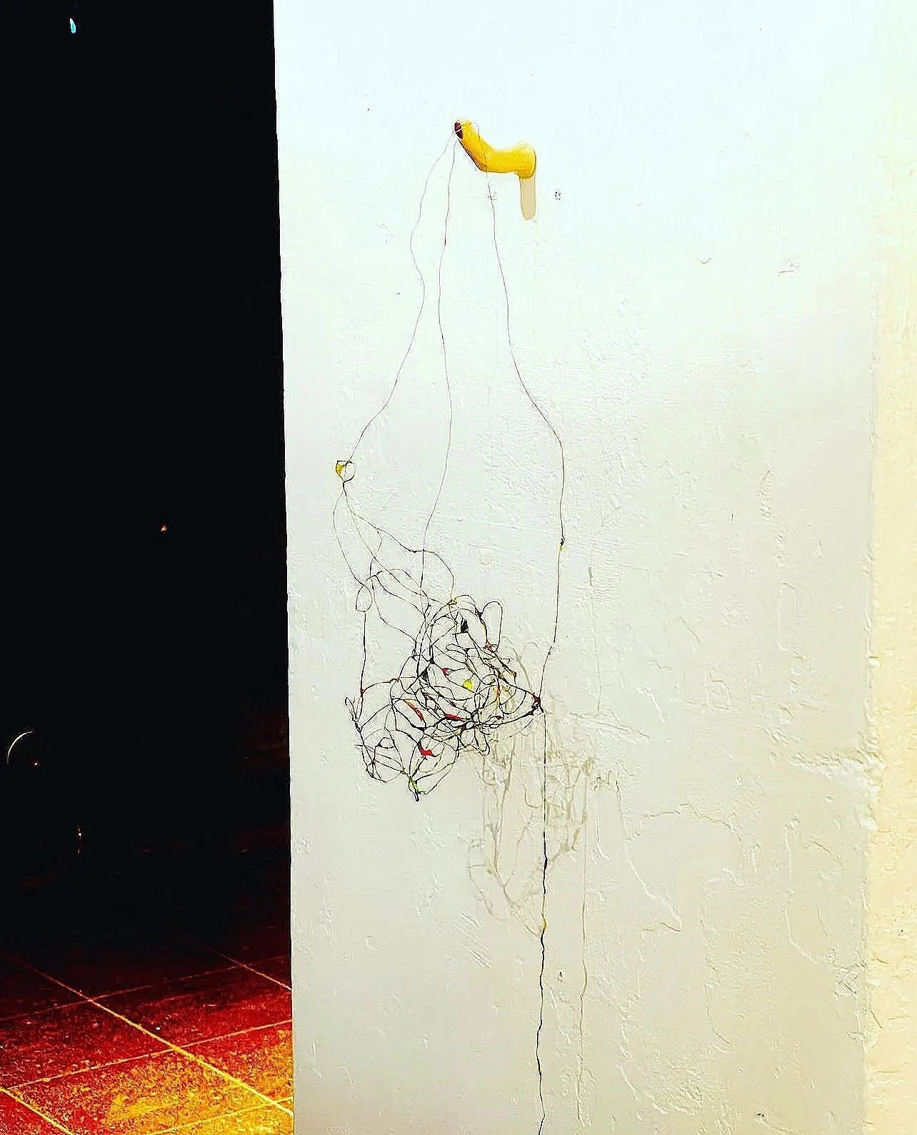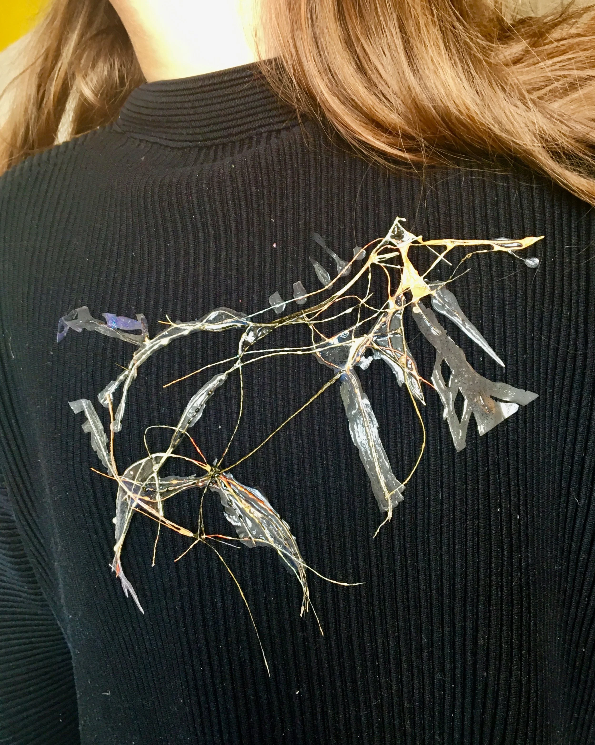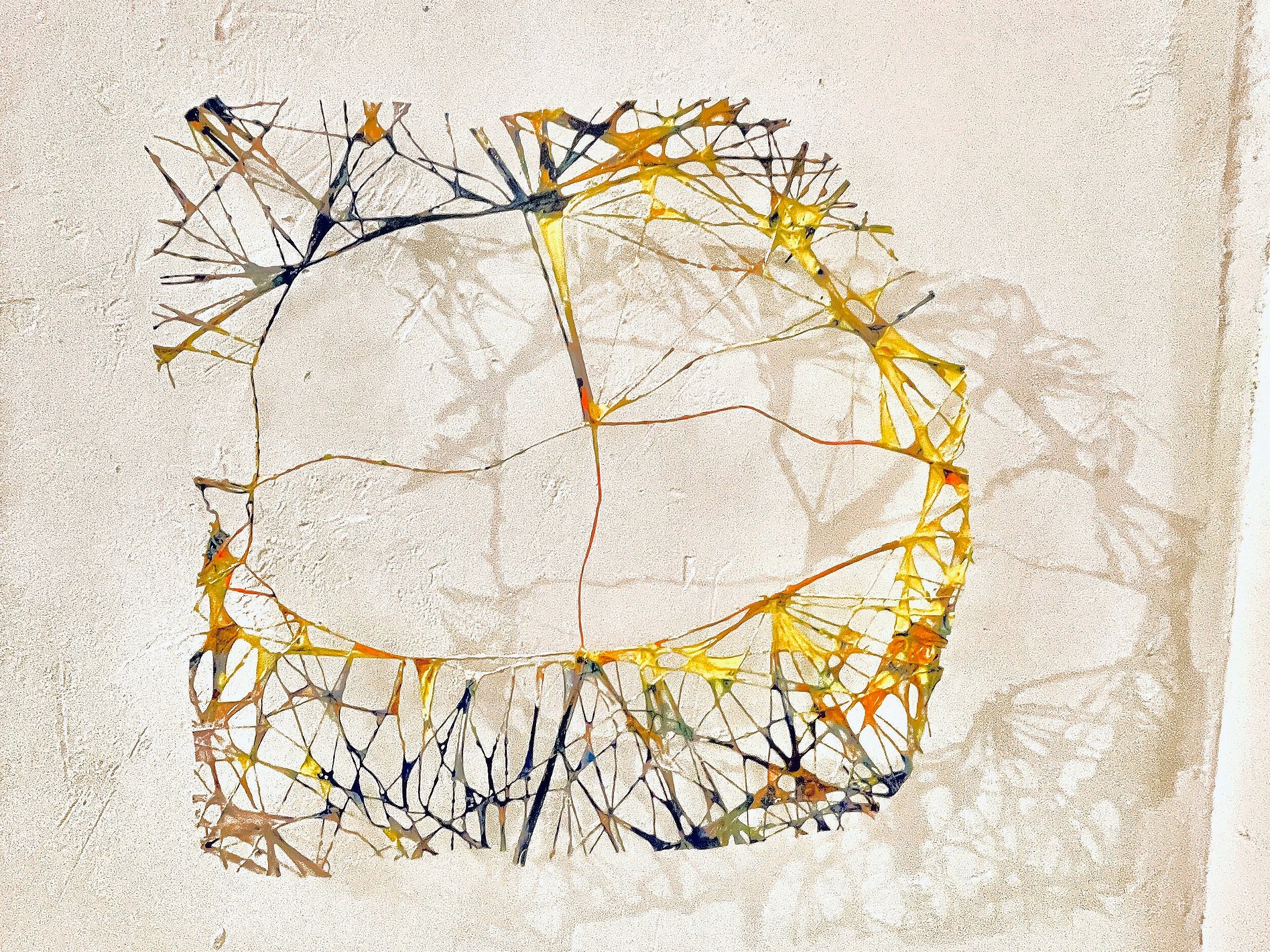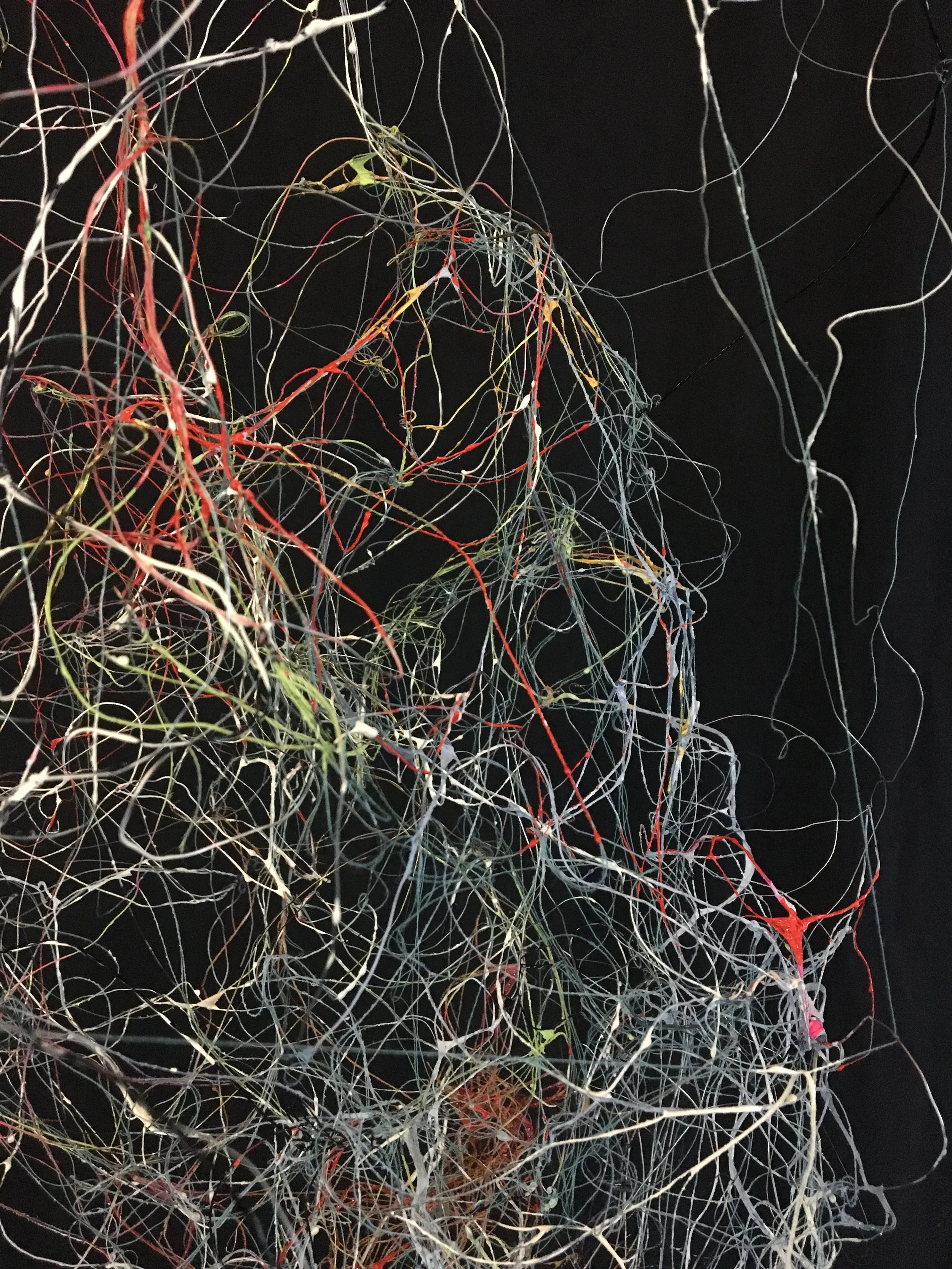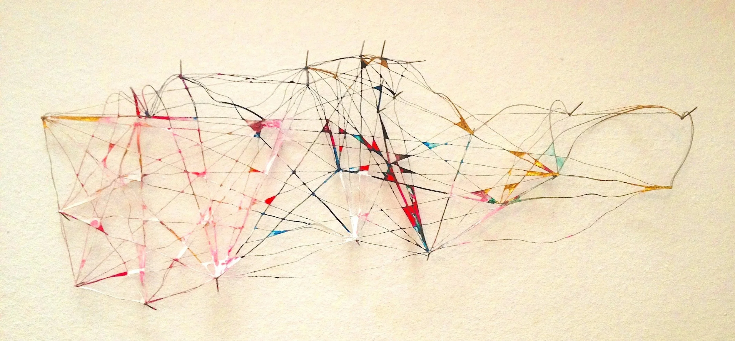 Daemon Eatersmetal wire, thread, paint ’One Element’2025 approx. 85cm ø 50cmtextile / metal wire, acrylic paint, reflective pigment, woven and shaped Portable… 2017