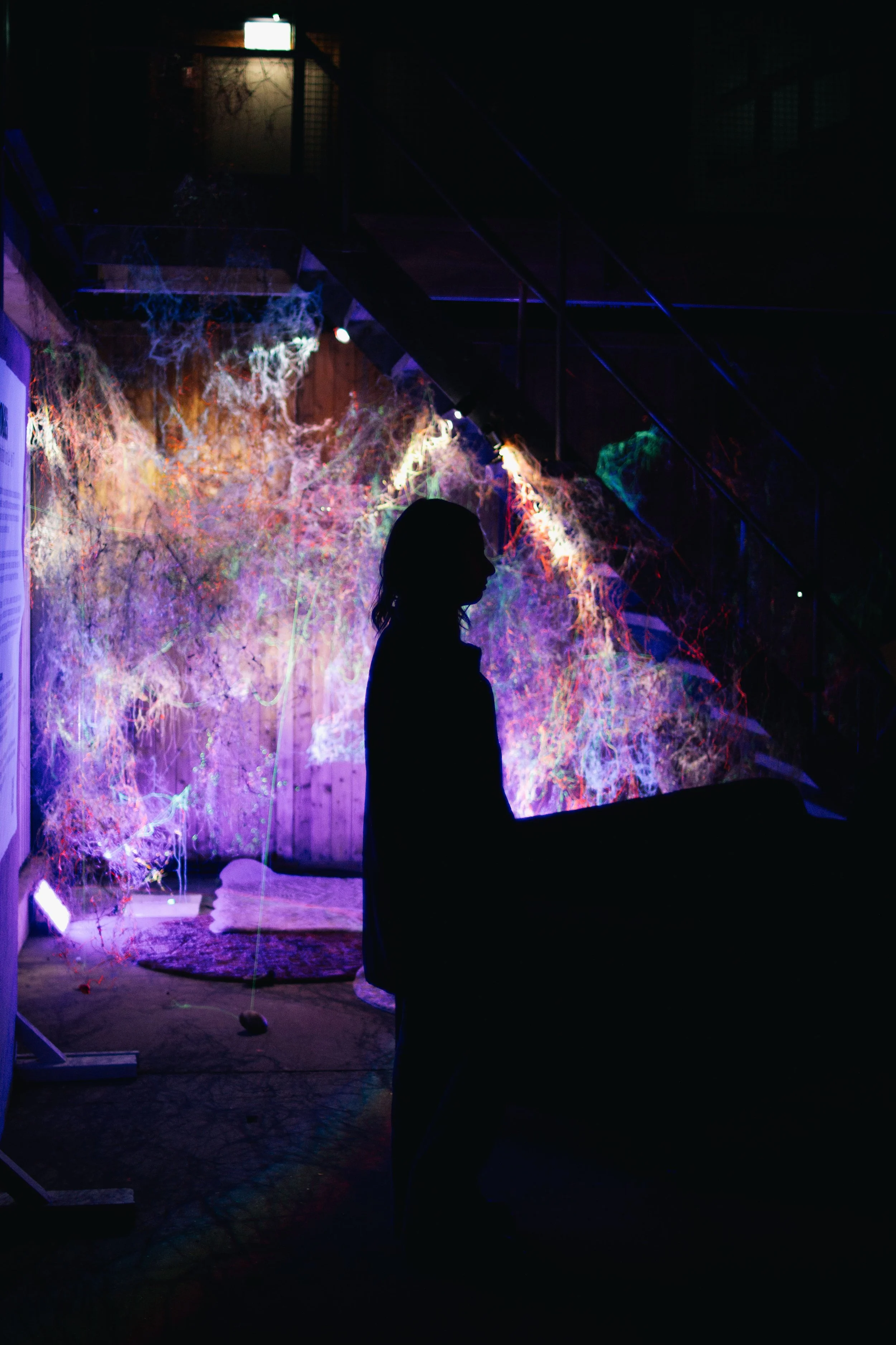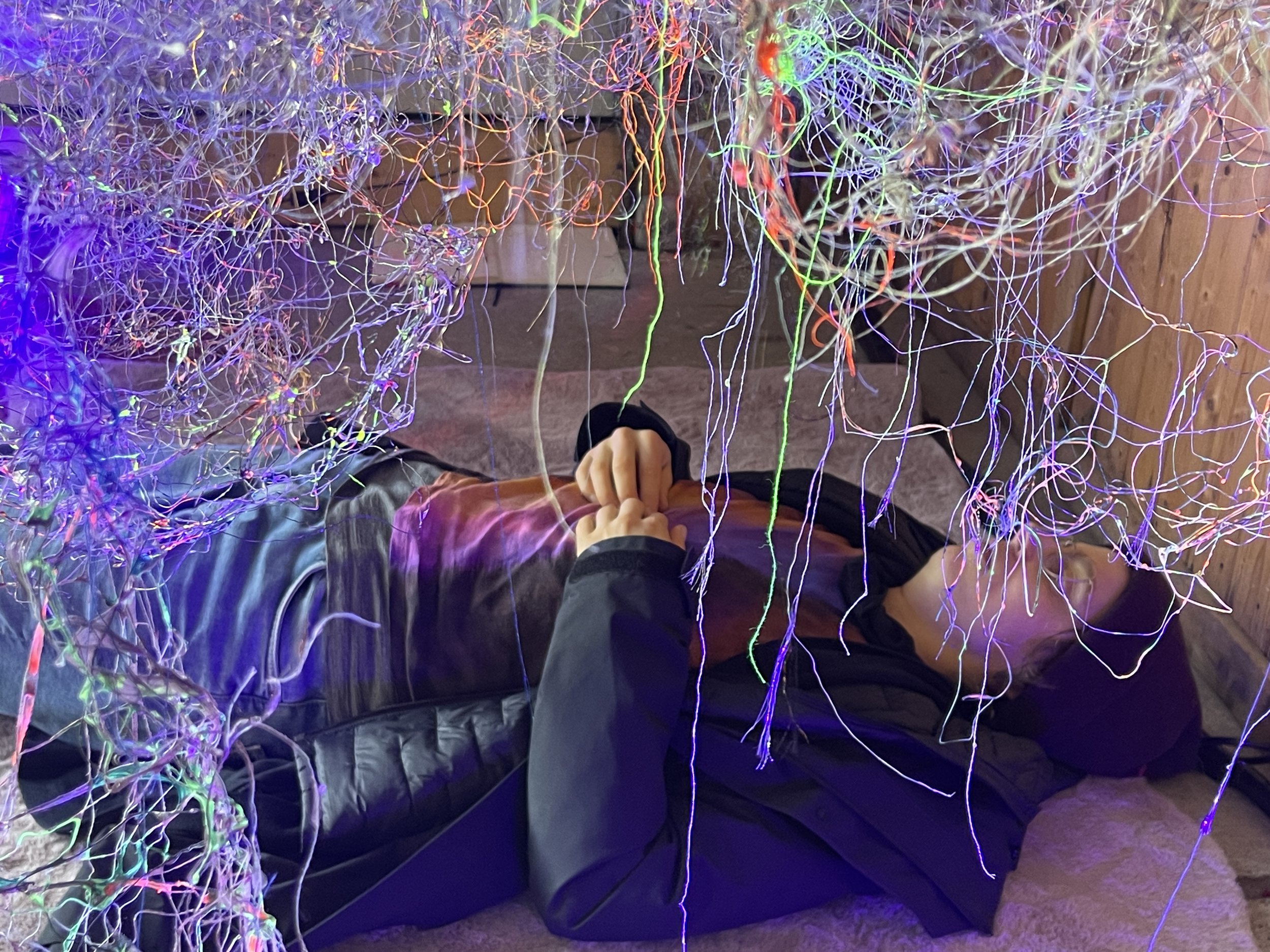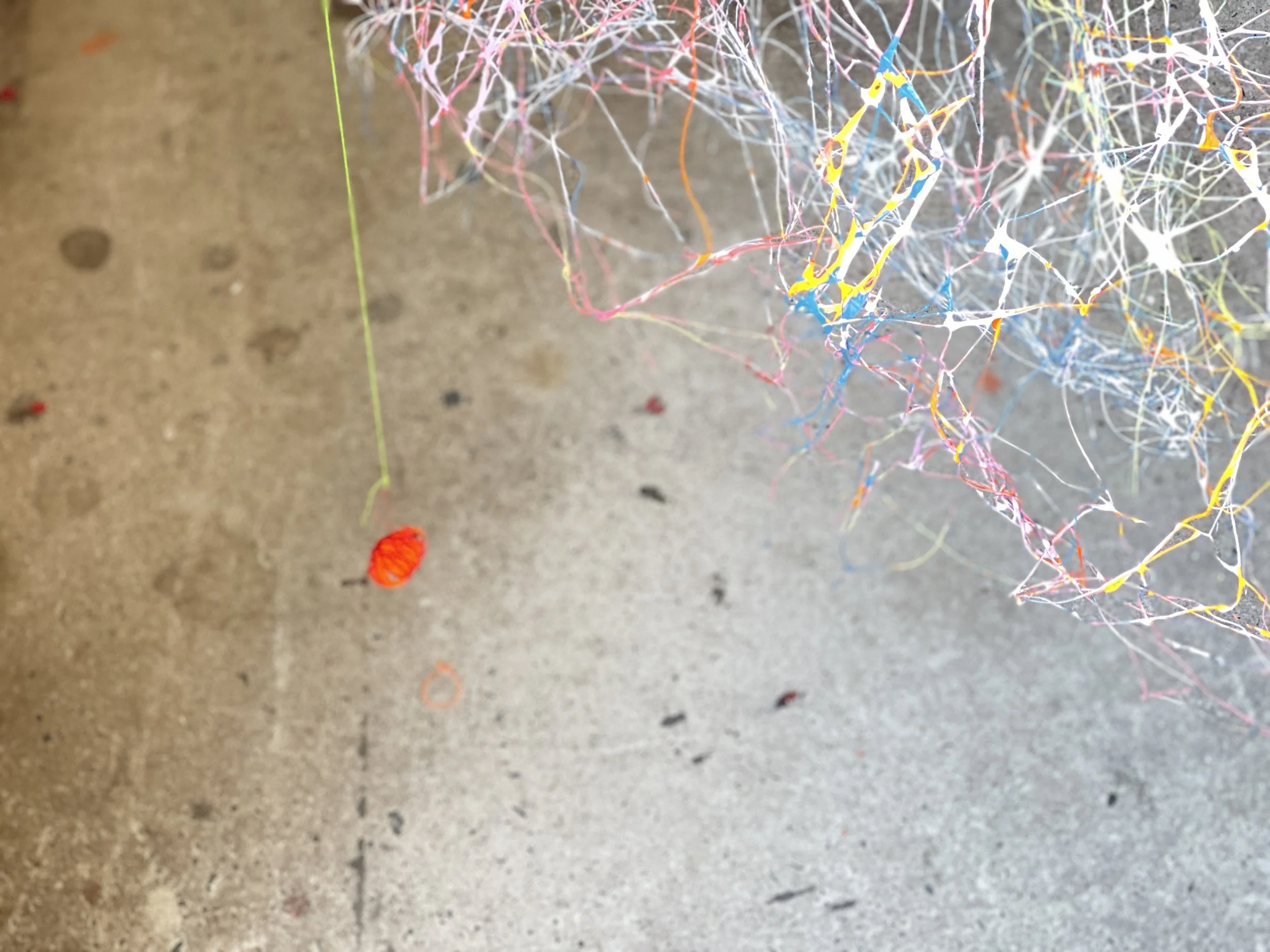 Since 2019, KAIROS has been growing into different shapes and sizes, although it is made of metal and textile thread, it seems to behave in an extremely organic way, it’s an expanding universe, a sort of industrial mycelium - it has a life of its own. For the exhibition Tongues , KAIROS #8 _NESTING will grow into a nest-like installation, the visitors are invited “to nestle” themselves within the cocoon, they are surrounded by a soundscape emanating from multiple small speakers, a loop of stories and memories creating a collective narrative. Home or HEIMAT is not only confined to physical spaces; it is a portable sanctuary within. It encapsulates the belief that one can carry this inner sanctuary anywhere, filling it with memories that transcend borders.