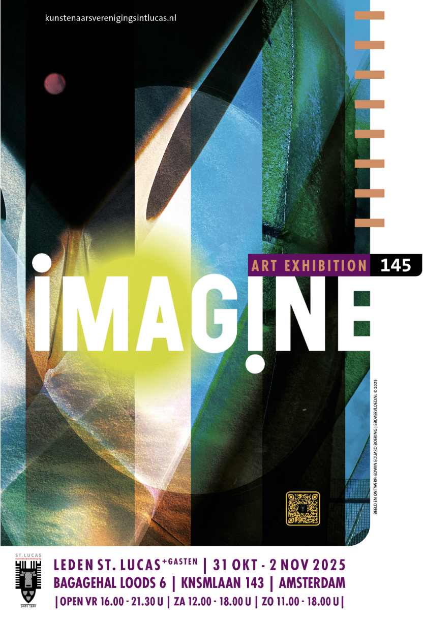 In 2025, the Sint Lucas artists' association will celebrate its 145th anniversary. To mark this special anniversary, we are organizing the exhibition IMAGINE/145 – a large-scale members' exhibition in the Baggehall of Loods 6 in Amsterdam.